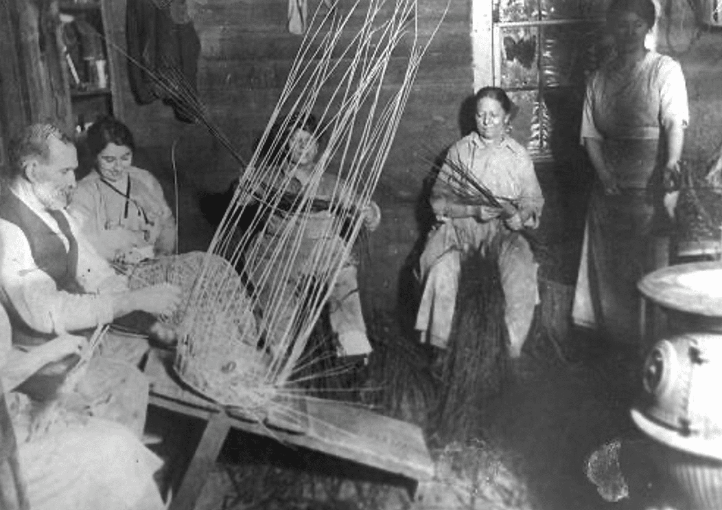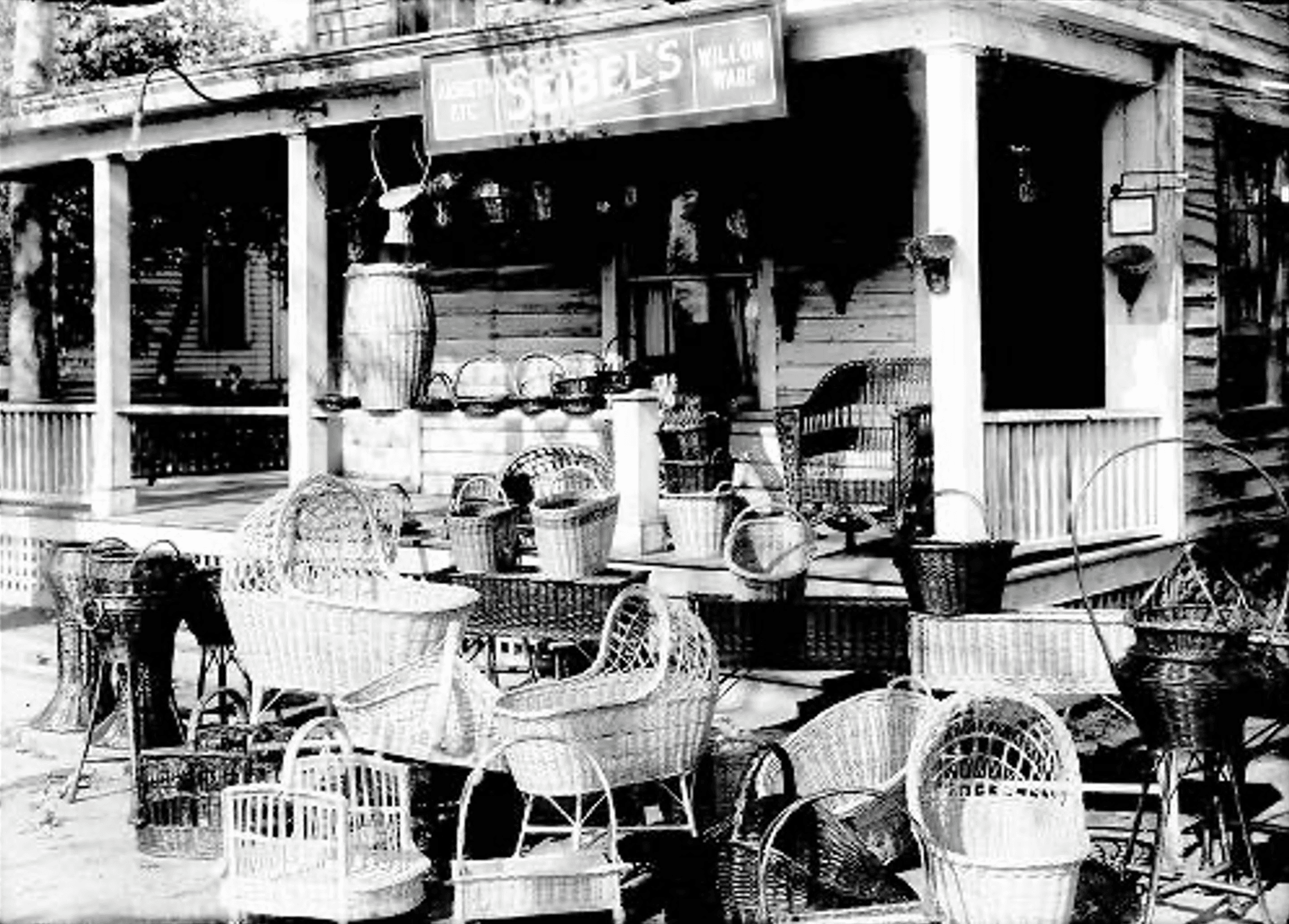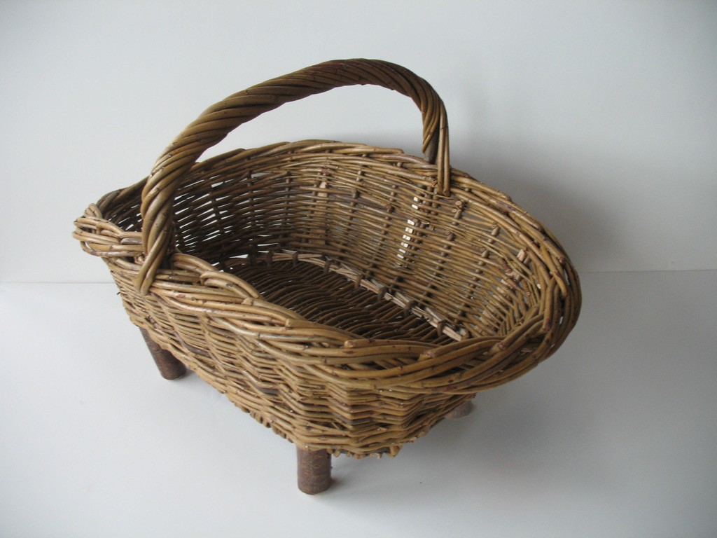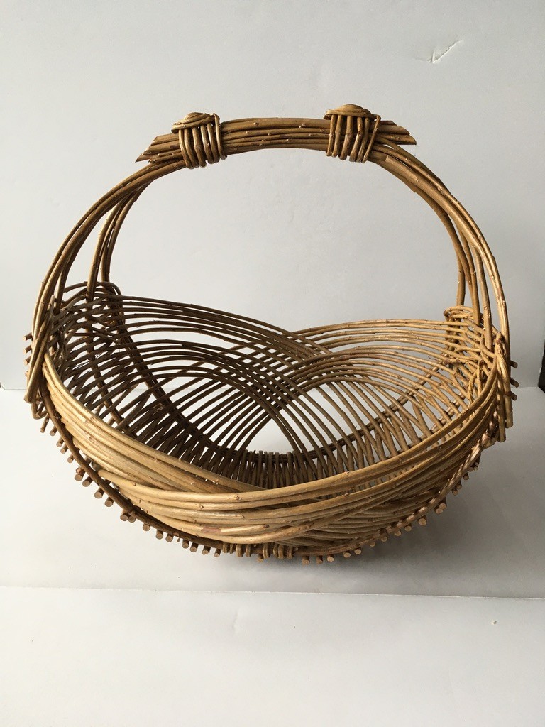 By the 1890’s, Liverpool willow basketmakers were producing an estimated 360,000 laundry baskets each year, making the small village an important national center of willow basket production (see image of the laundry baskets on the wagon). The Liverpool basketmakers made every sort of functional baskets for the home and floral industry, including bassinets and market baskets in peeled buff willow. Peeled willow was made through steaming the willow in specifically community-built “Steamer” buildings. At the same time, the “fancy“ makers were producing beautiful willow furniture (including chairs, tables, chaises, sofas, lamps) as well as baskets that were used on the pleasure boats on the St. Lawrence River. By the 1920’s, the willow industry was declining due to cheap foreign-made willow goods and poor cultural growing practices. Despite the pull of industrial factory work, a few weavers remained active into the 1960’s.